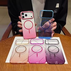 Funda de teléfono magnética anticolisión antideslizante con borde de dos colores degradado para iPhone 13 14 15 16 17 Pro Max, fundas móviles anticaída